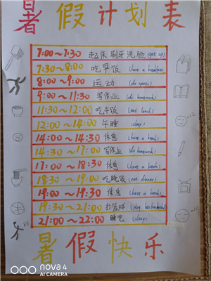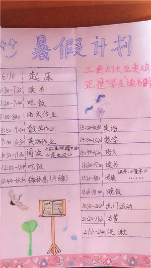 1.根据学生的优势和不足来制定暑假计划。在制定计划之前,要对孩子进行评估,赞扬并进一步发扬成长中的优势,针对不足之处,明确这个暑假的成长目标。