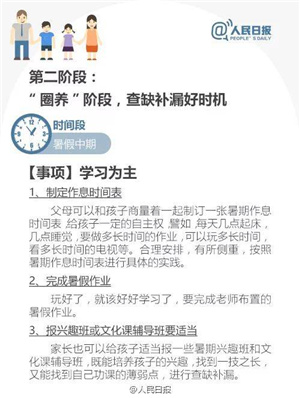 3.在生活中,最了解孩子的肯定是父母,所以,在制定暑假计划的时候,家长可以一起讨论修正,父母的参与会让孩子得到更中肯而精确的意见。