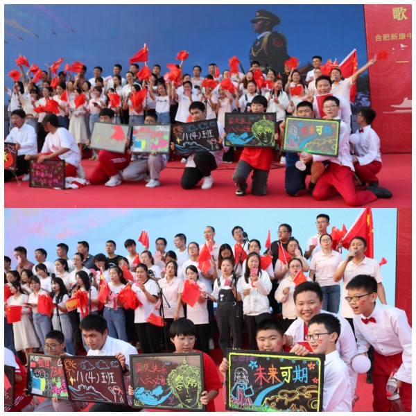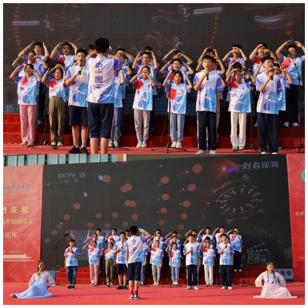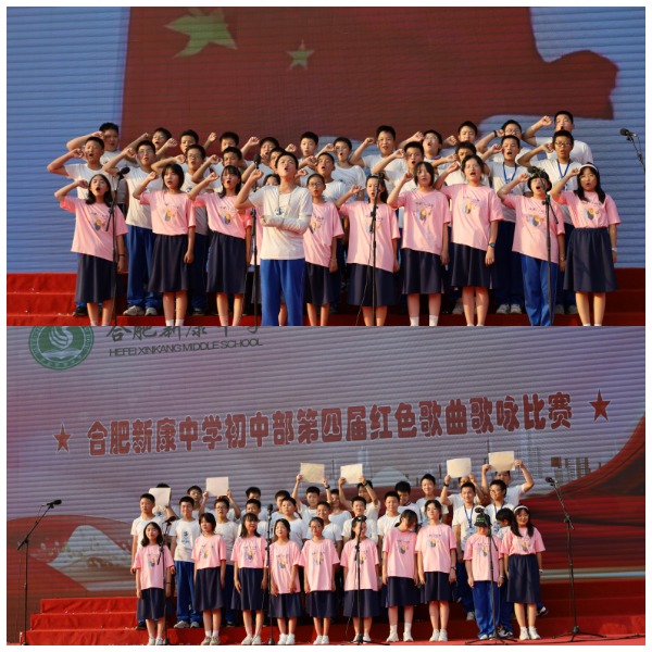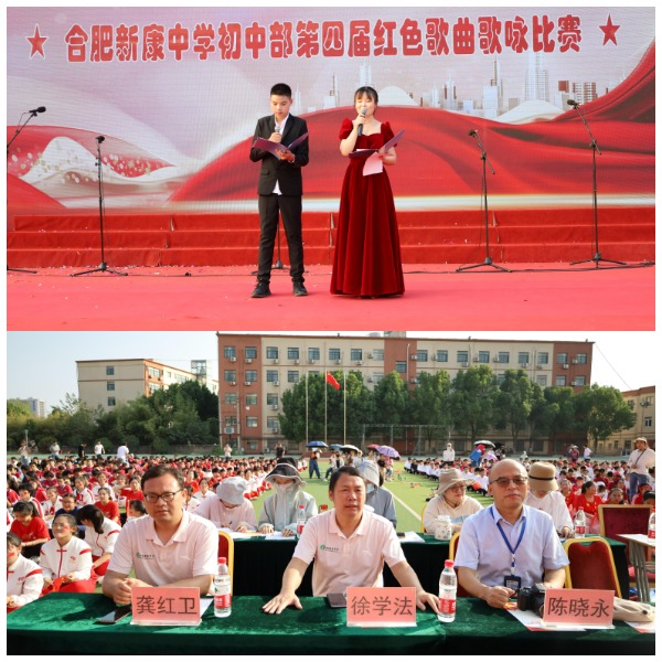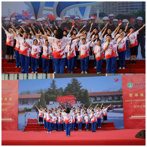 大美十月,看山河锦绣;举国同庆,歌盛世华章。为庆祝伟大祖国七十三岁生日,2022年9月30日下午,合肥新康中学初中部盛大举行了第四届红色歌曲歌咏比赛。本次活动由曾梦圆老师和卫青同学主持。