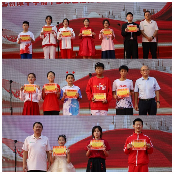 评委老师汇总了各班级的评分,评选出特等奖和一 、二等奖。在同学们的热烈欢呼中,徐学法校长 、陈晓永书记和龚红卫校长分别为获奖班级颁奖,并合影留念。