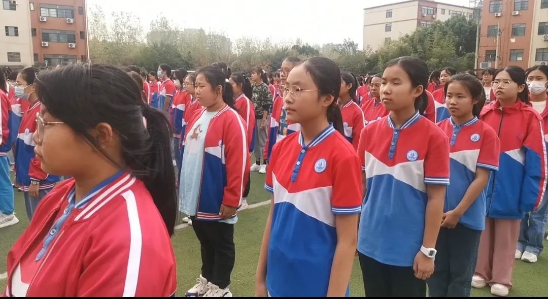 庄严肃穆的升旗仪式结束后,张娜娜老师进行了国旗下讲话。“我们不会忘记多年前,中华民族受侵略遭凌辱的历史,我们更会铭记,中华儿女前仆后继,英勇斗争的峥嵘岁月,当五星红旗在天安门广场升起的第一刻,我们深深懂得,今天的幸福生活来之不易,没有共产党就没有新中国,那用无数英雄的鲜血染成的五星红旗,是祖国的象征,人民的骄傲。”活动上,张娜娜老师告诫同学们要牢记历史;激励同学们,要在该奋斗的年纪自立自强,立志报国。