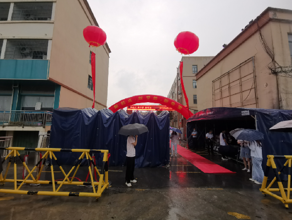 8月27日早上7:30-9:00是2022级新生学前适应性教育报到的时间,为保证入校工作进行的安全有序,新康中学全体领导及教师在早上六点半之前,在朦朦细雨中到达校园,提前做好新生入校准备工作。教师们在雨中给同学们带来的细心周到的服务,让家长和同学们感受到新康的温情。