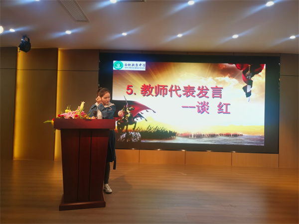 谈红老师代表九年级全体教师进行发言,从要有“坚定的目标”“不懈的信心”“高效的效率”三个方面对全体学生提出建议。