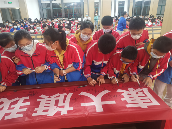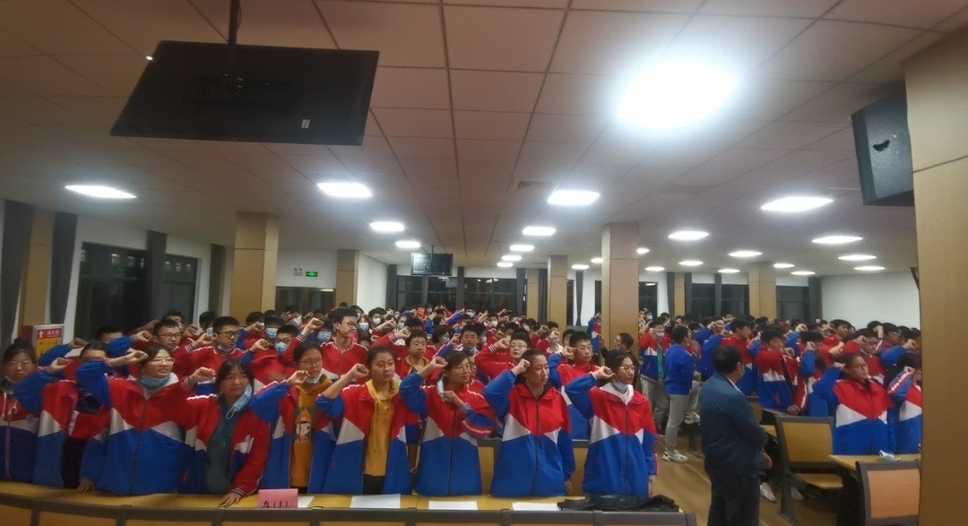 动员大会随着全体同学的集体宣誓进入高潮,全体学生在陈世宝老师领读下举起右手庄严宣誓: