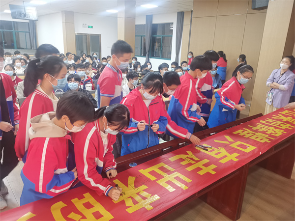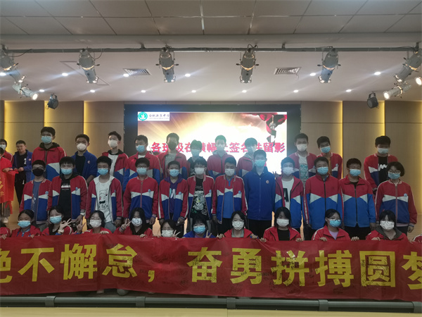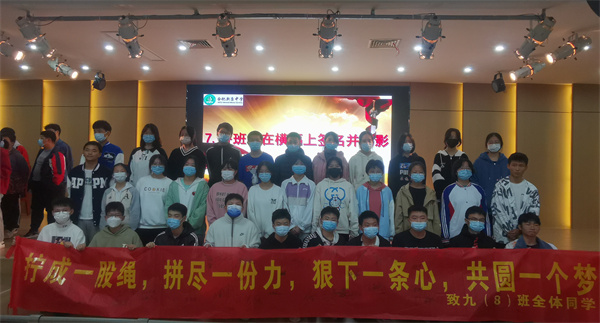 九年级各班学生分别上台签名并合影留念,一张张笑脸将美好的瞬间永远定格。