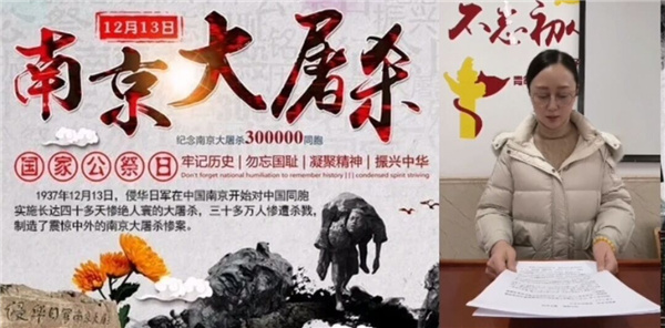 2022年12月13日是第九个国家公祭日,为纪念死难者同胞,深入开展爱国主义教育,弘扬民族精神,合肥新康中学初中部于当日上午举行了“勿忘国耻,吾辈自强”为主题的线上升旗仪式。活动由德育处王琪主任主持。