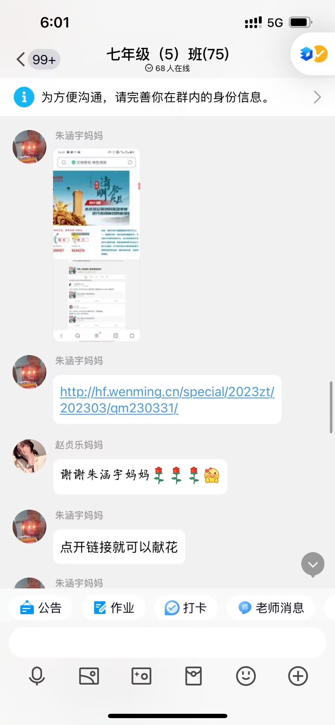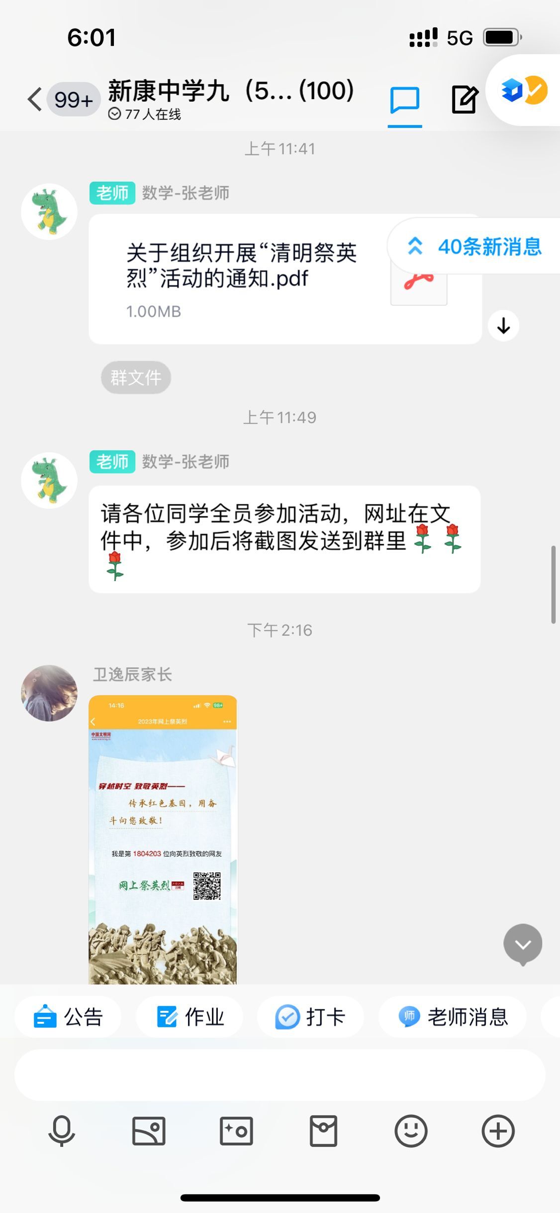 活动开始之前,德育处王琪主任安排各班班主任积极转发活动链接,并介绍此次活动的意义。同学们登陆指定的网站进行线上祭奠,留言、献花活动了解英烈背后的感人故事,表达对英烈的敬仰、追思以及继承革命先辈光荣传统、当好接班人的远大志向,厚植爱国主义情怀。有的学生在留言中写到:牢记历史,吾辈当自强。有的写到:缅怀先烈,致敬英雄。有的写到:爱我中国,奋勇当先等等。各班同学纷纷献出一朵朵鲜花,燃起了浓浓的崇尚英雄的爱国主义情怀。