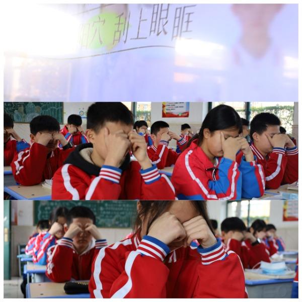 眼睛是心灵的窗户,预防近视从做好眼保健操开始。在眼保健操员的带领下,同学们伸出手,跟着广播节奏认真的做眼保健操。