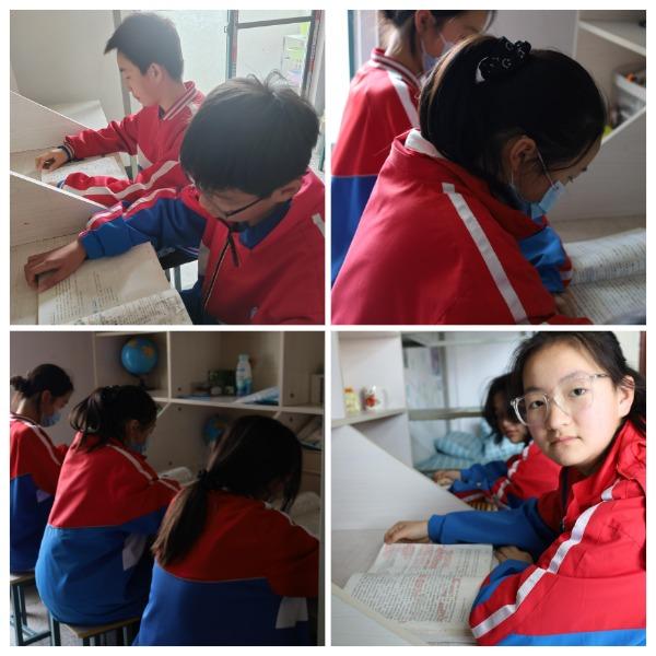 同学们在美美的一顿午餐后,陆续进入寝室午休。坐在自己的书桌前,拿出喜欢的名著书籍,慢慢地进入沉浸式阅读状态。一场午间阅读之后,同学们浸润了书香,进入了梦乡。