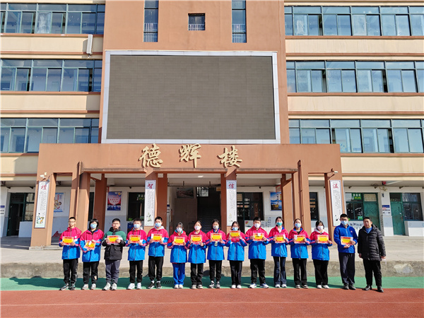 随后,王琪主任根据上学期德育处的评优评先结果,公布了在上学期获得表彰的学生名单。共颁发了“三好学生”、“优秀学干”“进步之星”、“文明之星”、“劳动之星”五大奖项,徐校长给获奖的同学们颁奖并合影留念。
