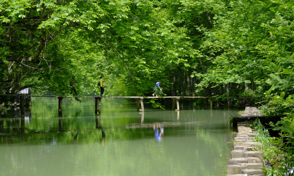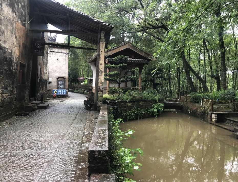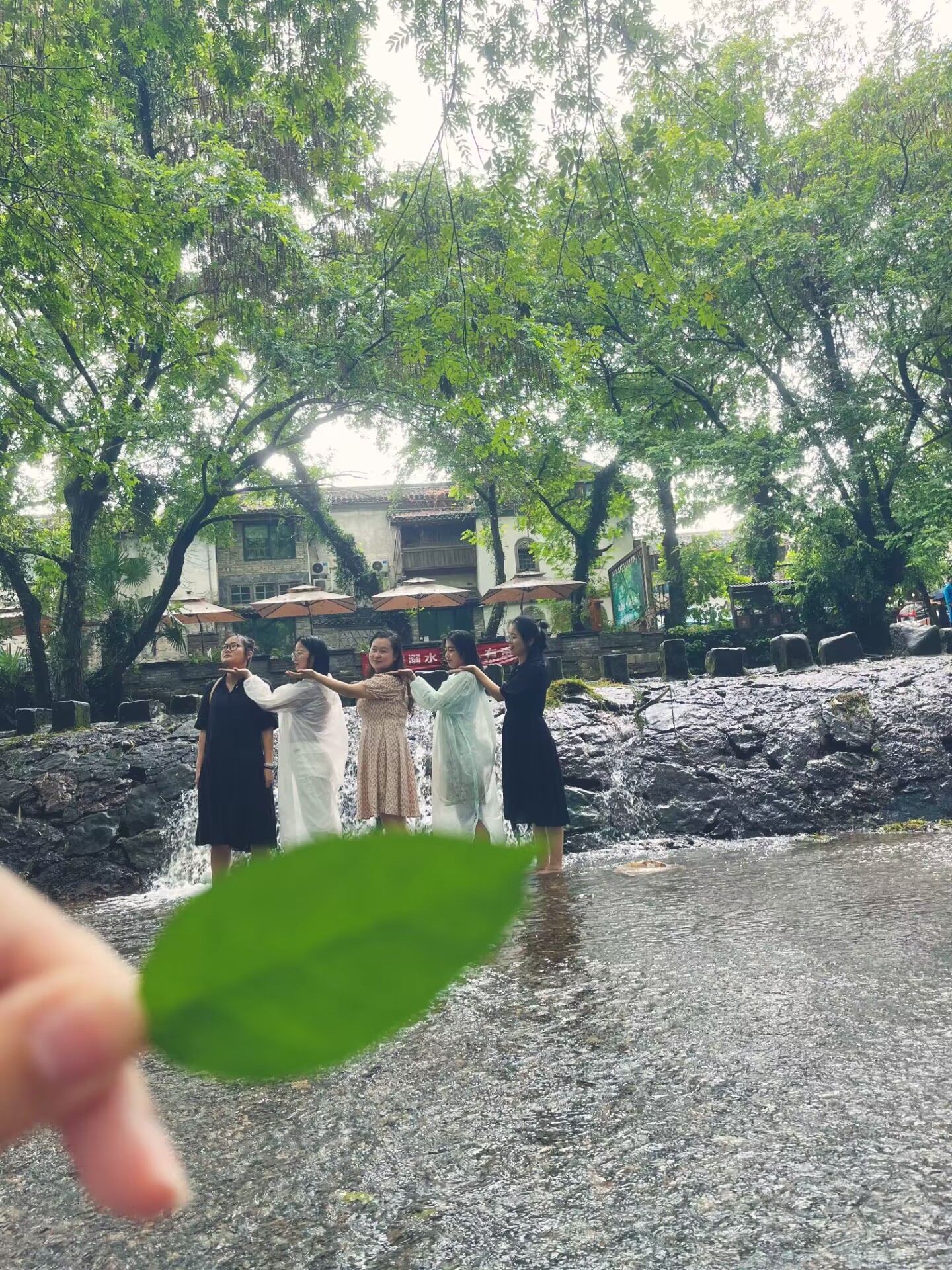绵绵细雨中,老师们畅游在村中,清新的空气扑面而来。走上简易而充满野趣的木桥,碧绿的河水从桥下流过,郁郁葱葱的树林让人身心舒爽。老师们们享受着自然风光和古村落的风情,随意自在。尽享生活慢节奏。