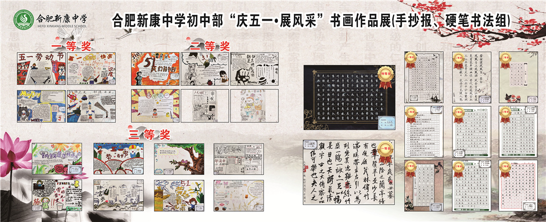 田家少闲月,五月人倍忙。为庆祝“五一国际劳动节”的到来,丰富学生的校园文化生活,合肥新康中学初中部举办“庆五一·展风采”书画作品活动,此次活动由教务处牵头,主要由绘画、书法以及手抄报的形式展示。