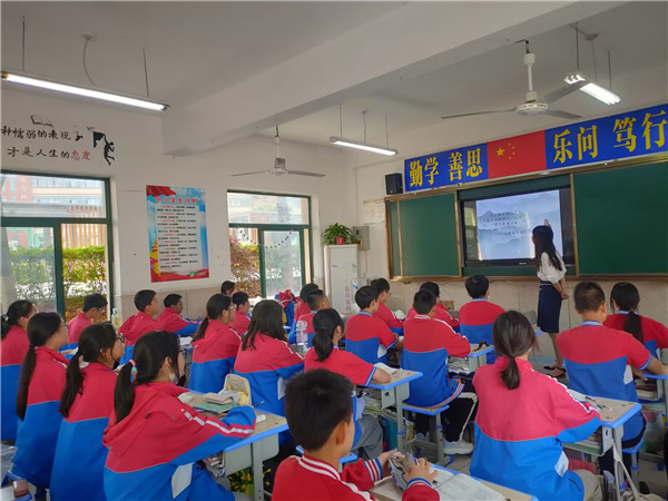 5月19日语文组徐丽雯老师在七(4)班进行了公开课,课题是《登飞来峰》古诗教学课,徐老师设置情境和王安石一起登上飞来峰,感受飞来峰的壮阔景象。通过诵读一步步了解王安石,从诗作背景和他的经历明白王安石“站的高,看得远”是因为他格局高。引导孩子对生命的思考:我们该如何让自己“站得高,看得远。”最后以王安石的《元日》与《北山》进行比较阅读,体会诗人在人生不同时期的不同人生态度。无论处于顺境还是逆境,都能有“不畏浮云遮望眼”的无畏勇气与坚定信念。