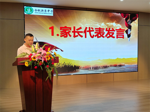 九(11)班杨晓雅家长作为毕业班家长代表深情寄语。他以情感真挚的期望之语展望了毕业班学子的美好未来。青春莫辜负,立志把名扬,当学之年,应以拼搏奋斗的精神投身于学习,应以百折不挠的精神迎接一切中考挑战。他祝愿本届毕业班的每位学子最终梦想成真,祝新康中学再铸辉煌。
