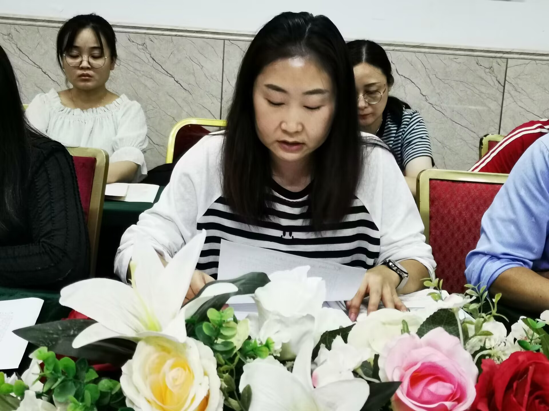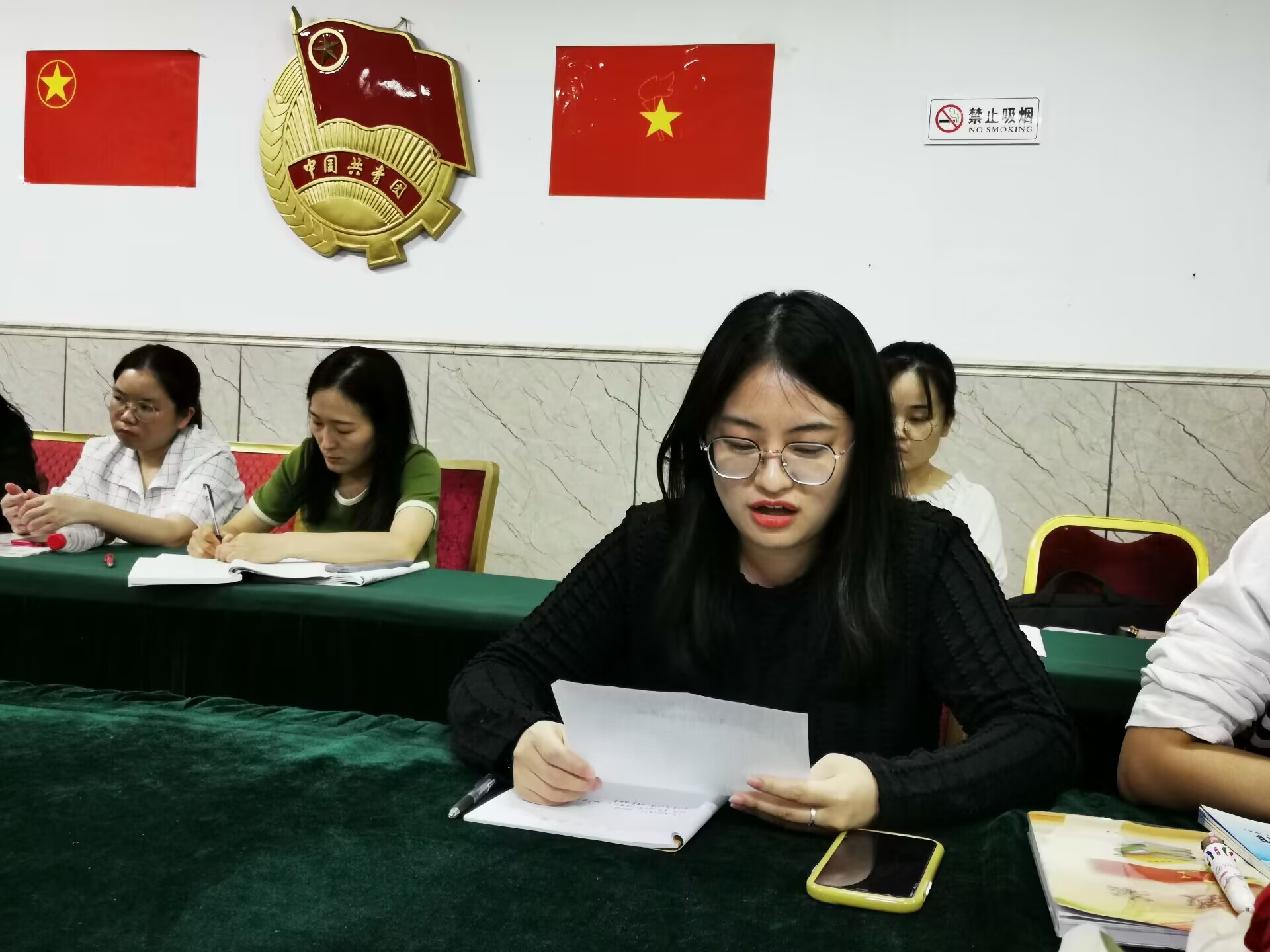 首先,由历届毕业班教师张盼盼发言,她总结反思过去的不足,并对后期教学工作提出建议:对优生的严爱,对中等生的刺激,对后进生的鼓励。