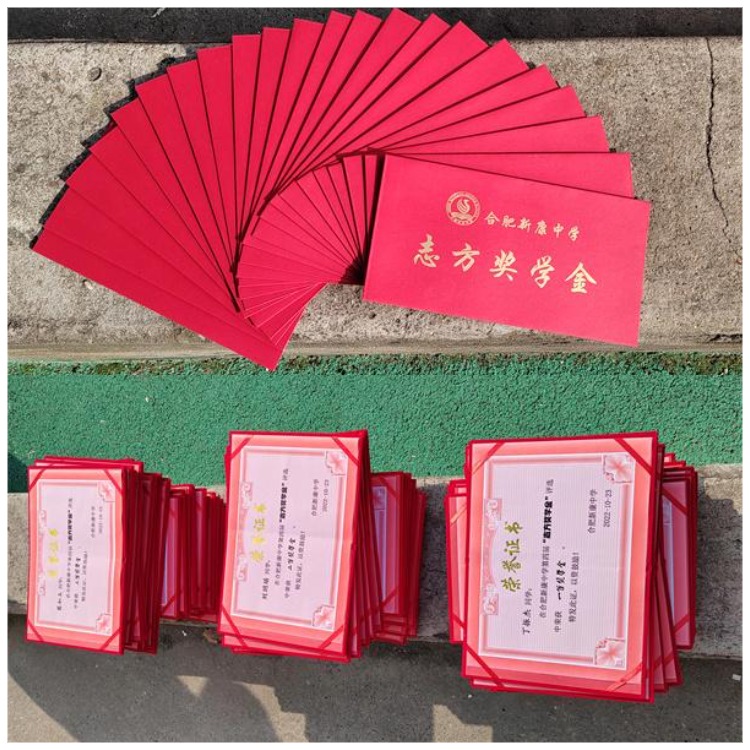 “志方奖学金”每学年颁发一次,学校根据学生每学年的总体表现最终确定获奖名单。李超主任在活动上宣读了八、九年级获得一、二、三等奖学金的学生名单,徐校长和龚校长为获奖学生颁发获奖证书及奖金并合影留念。