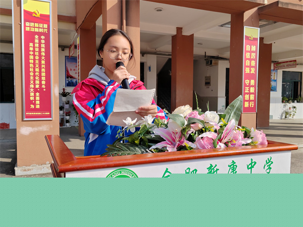 优秀学生代表金芷月同学致开场词。她提前向即将获得志方奖学金的同学表示祝贺,随后她的发言以“努力”和“感恩”两关键词展开。她告诉同学们,想要获得鲜花和掌声,就要付出超出常人的努力,就要将自己的全身心投入到学习中去。同时,我们要懂得感恩,要感恩父母的付出,感恩老师的栽培,感恩学校设立“志方奖学金”的激励,而感恩的力量会让我们拥有更多前进的动力。