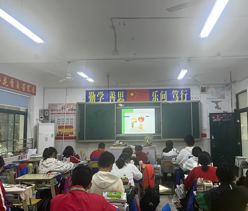 班会课围绕“安全记心间”“教学楼安全”“消防安全”“食品安全”“疾病预防”以及“杜绝校园暴力”六个模块展开。各班级形式不一,但主题明确,有的班级是以班主任为核心的班会,班主任通过PPT展示,向学生展示安全教育的重要性;还有的班级以视频为主题,生动直观地展示生活中发生的猝不及防的事故给人带来的生命伤害;还有一些班级开展以学生为主的班会课,学生分享自己在生活中所听闻的安全事故发表感悟。总之,内容丰富多彩!