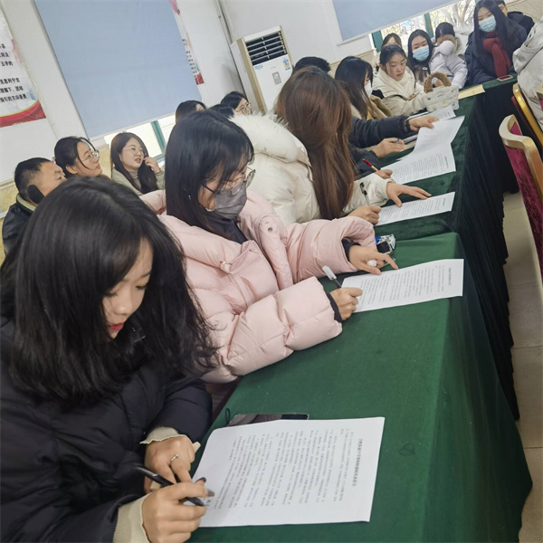 总结会议上,王林主任带领全体教师认真回顾和学习了《新时代中小学教师职业行为十项准则》,并向全体教师提出要求,严禁教师出现违规行为。随后组织全体教师签署了《师德师风教师承诺书》。