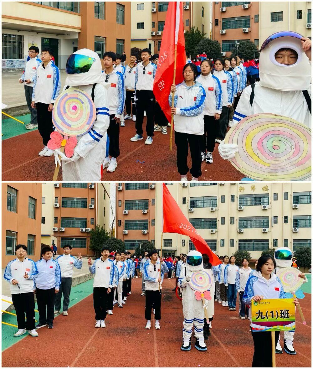开幕式上首先入场的是国旗班代表队、彩旗队和裁判组代表队,他们举着国旗和彩旗,步伐整齐、端庄大方、器宇轩昂。随后是23支班级代表队依次出场,他们身着不同的服装,展开别具一格的队形,开始了极具特色的精彩表演,为全校师生带来了一场异彩纷呈的视觉盛宴。一场场表演将开幕式的氛围一次次推向高潮,全校师生的掌声、欢呼声热烈不断。