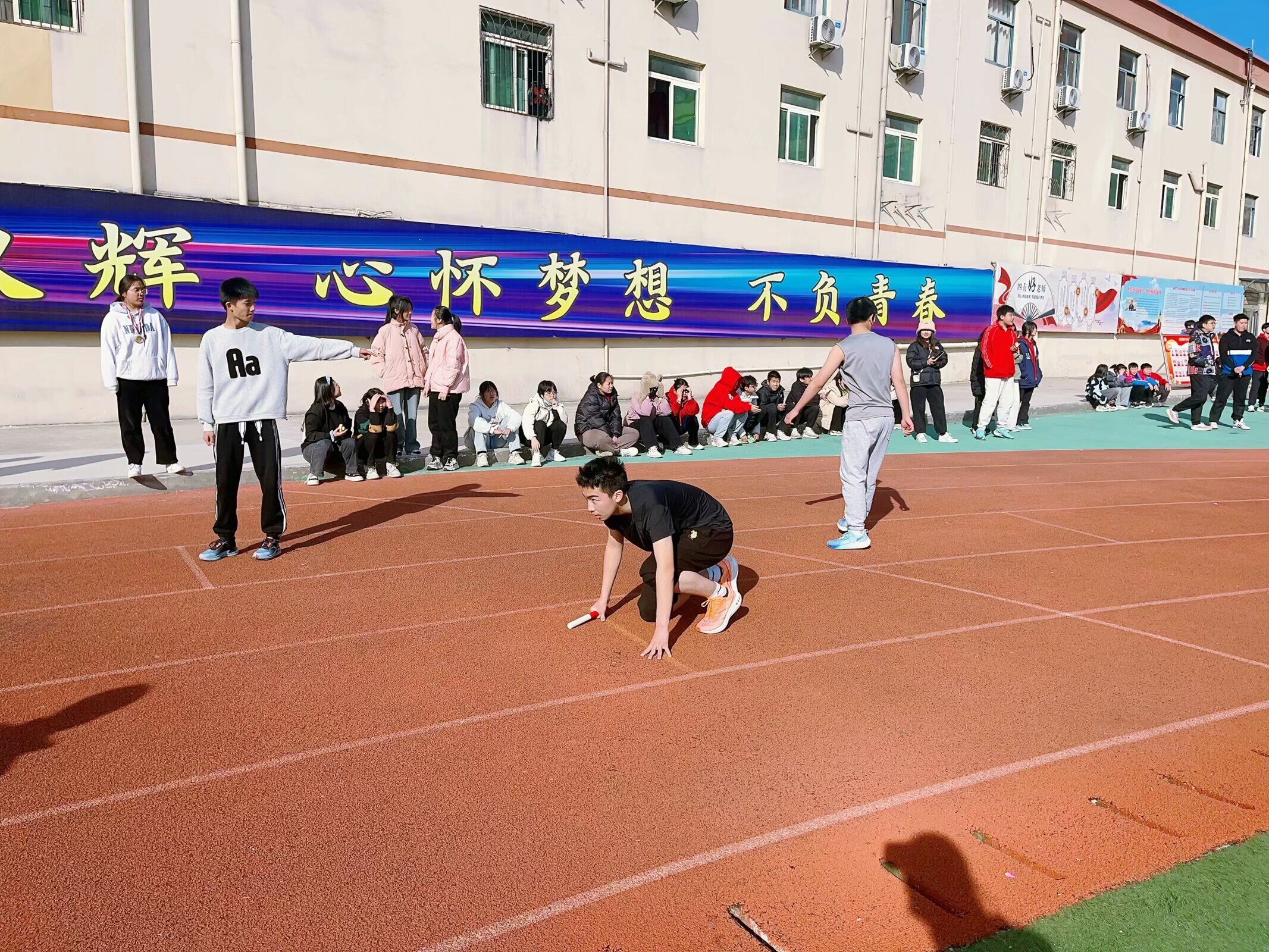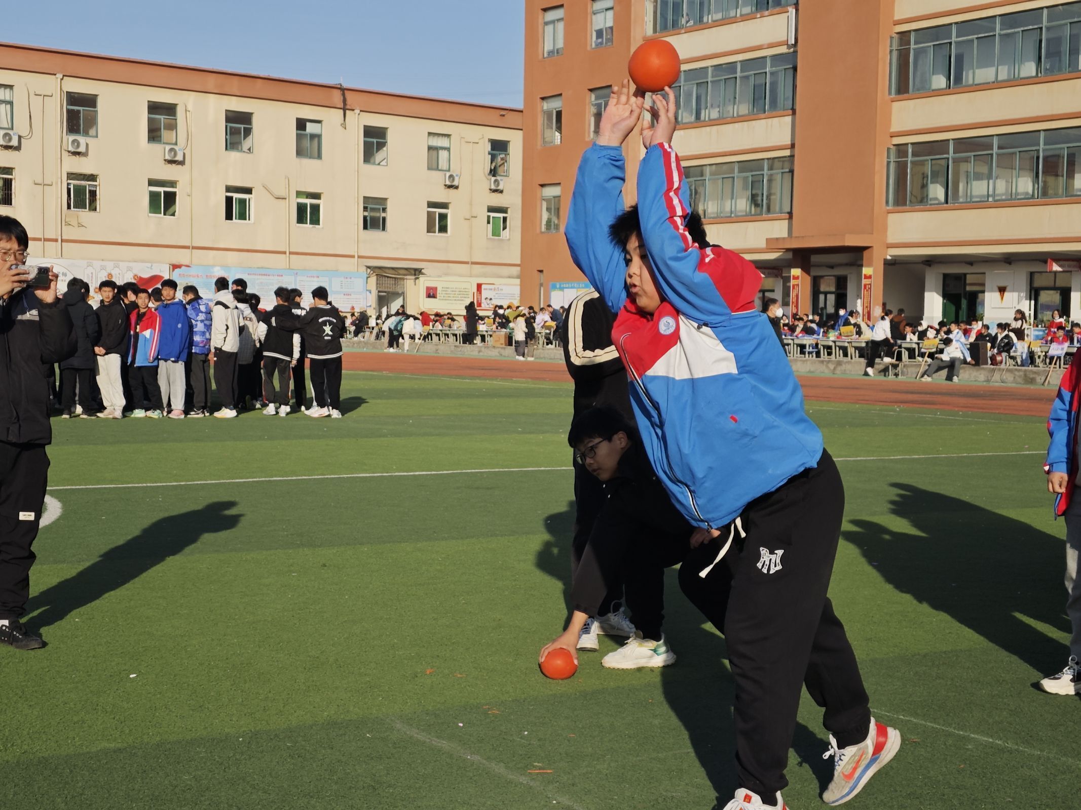 晴空下,操场上,每一个比赛都充满了竞争的激情和体验的快乐,每一个项目都见证了同学们挑战自我,团结拼搏的勇气。赛场上的呐喊声不绝于耳,参赛队员们团结拼搏、力争上游,场面紧张有序,妙趣横生。