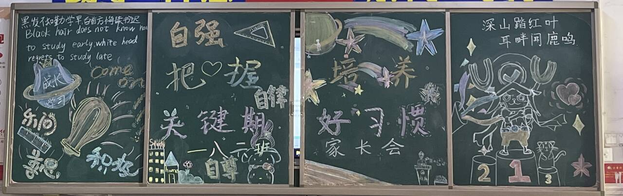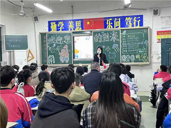 各年级家长会上,班主任与家长们确立了共同的育人目标。七年级学生刚迈入初中阶段,要着力引导学生适应初中阶段,适应青春期的变化和生活;八年级学生处于性格和习惯养成的关键期,要着力培养和保持学生的良好的的性格和行为习惯;九年级学生到了关系人生命运的转折阶段,要着力于给学生树立中考目标,鼓舞斗志。