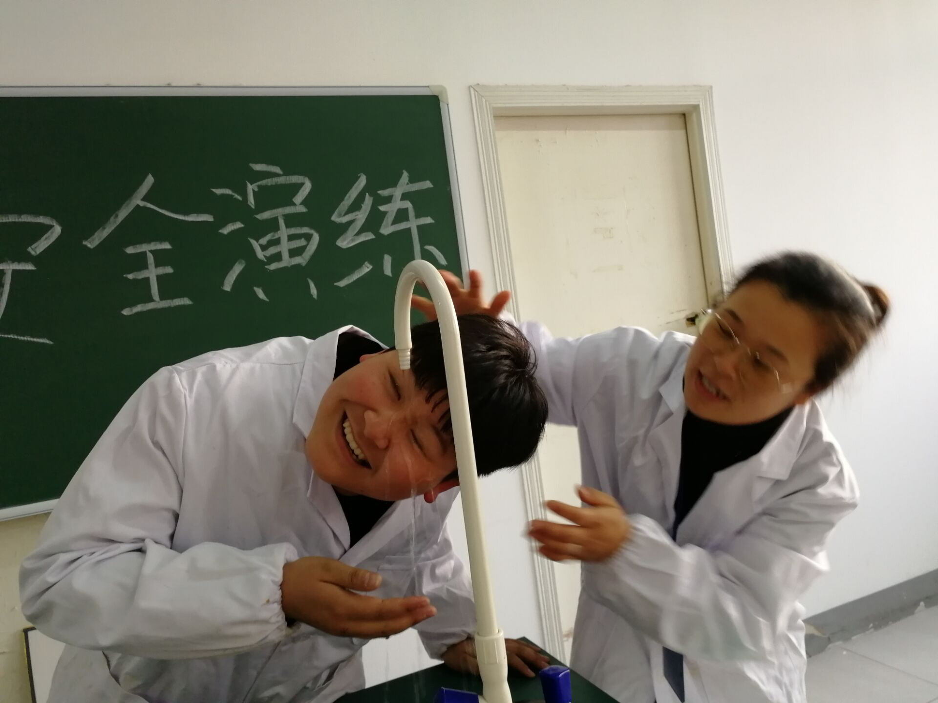 化学实验时往往接触到易碎、容易割伤的玻璃仪器;容易使人中毒的药品和气体;容易灼伤、烫伤的化学药品;易燃、易爆的可燃性气体;容易腐蚀皮肤、衣服、眼睛的强酸、强碱溶液……为进一步普及实验室安全知识,提高我校师生对实验室化学危险品突发安全事故的应急处置能力以及增强安全防范意识和安全防护技能,11月26日下午,我校在化学实验室开展了“化学实验突发事件应急演练”活动。