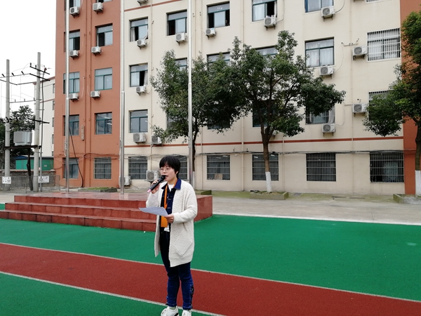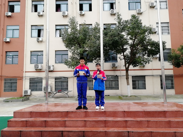 随着全体师生高唱国歌,国旗在旗手的手中冉冉升起。由高一1班孙伟枫、高一3班吴雨晴两位同学为大家带来的诗歌朗诵《廉洁在我心》。他们用洪亮而真切的声音把廉洁之风送入同学们的心中,也正如他们所诵的一样,“廉洁之火在我们心中生生不息”。