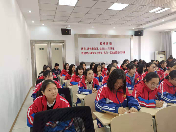 余丽老师和学生们娓娓道来,什么是爱?爱一定有喜悦,爱一定有伤害,如果爱,请深爱,如果爱,轻轻爱,因为爱,一定有伤害。唯真知才有真爱,唯有真自知才有真自爱。将整场讲座推向了一个高潮,全场掌声不绝于耳。