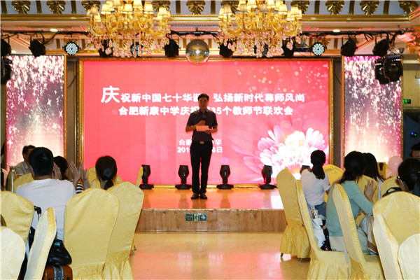 9月6日下午,合肥新康中学庆祝第35个教师节联欢会隆重举行,合肥新康中学董事长王俊,合肥新康中学党支部专职副书记陈晓永,合肥新康中学高中部校长胡文波,合肥新康中学初中部校长徐学法,合肥新康中学初中部副校长李森、龚红卫,以及全体教职工参加了此次联欢会。