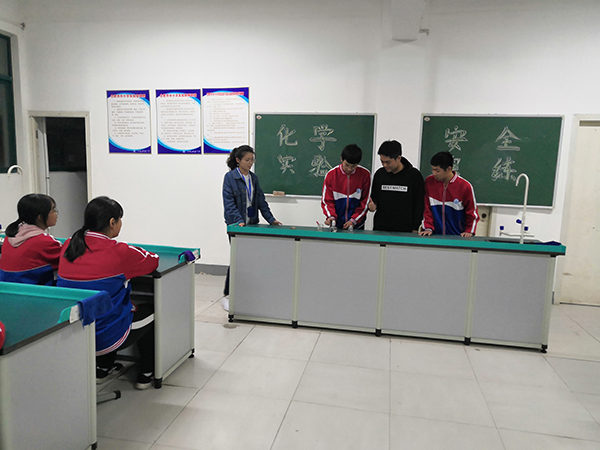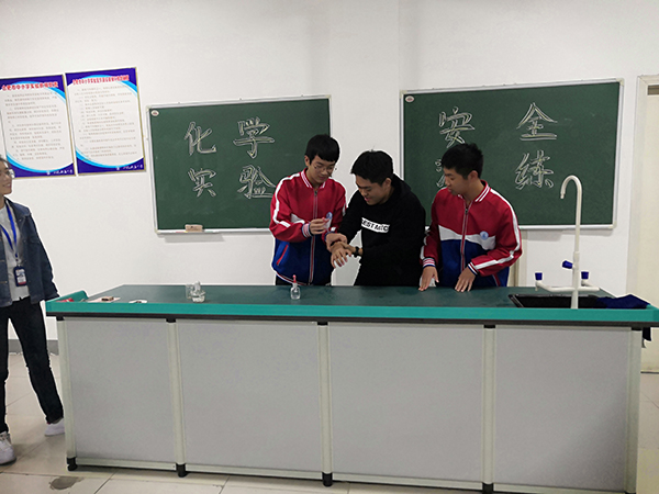 为了增强学生们的化学实验安全意识,2019年10月28日下午,合肥新康中学汪菊琴老师带领学生在化学实验室里开展了安全突发事故应急演练。