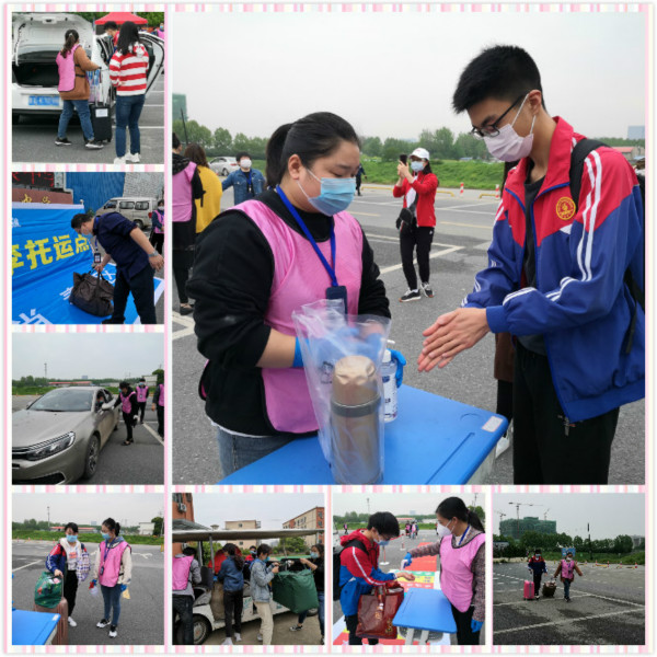 指挥车辆、沟通家长、行李运输、消毒测温、宿舍管理,老师们认真又负责的工作着,学生们安静又有序地配合着。每一个环节,都紧密相关;每一个关卡,都井然有序;每一个老师,都各司其职。即使天降大雨,工作的步伐也不曾停止。忙忙碌碌中,来来往往间,那是老师对学生满满的关心与爱护。