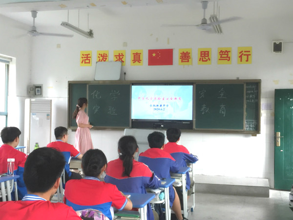 进行化学实验时往往接触到易碎、容易割伤的玻璃仪器;容易使人中毒的药品和气体;容易灼伤、烫伤的化学药品;易燃、易爆的可燃性气体;容易腐蚀皮肤、衣服、眼睛的强酸、强碱溶液等。为了增强学生们的化学实验安全意识,2020年6月2日的下午,化学组陈文老师带领学生开展了化学实验安全教育活动。