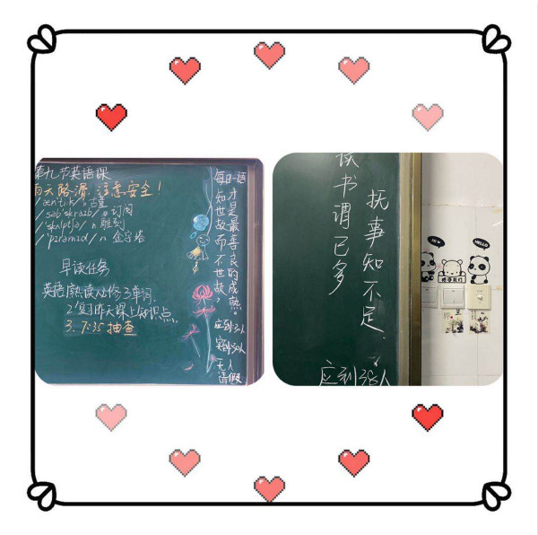 各班班主任为了更好的提高早读质量,根据实际情况在班级的黑板上书写励志话语,激发学生的奋勇进取之心。