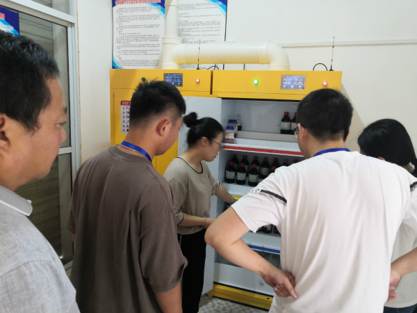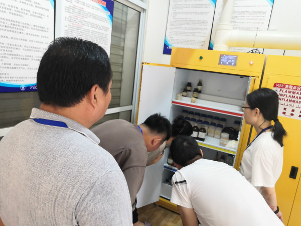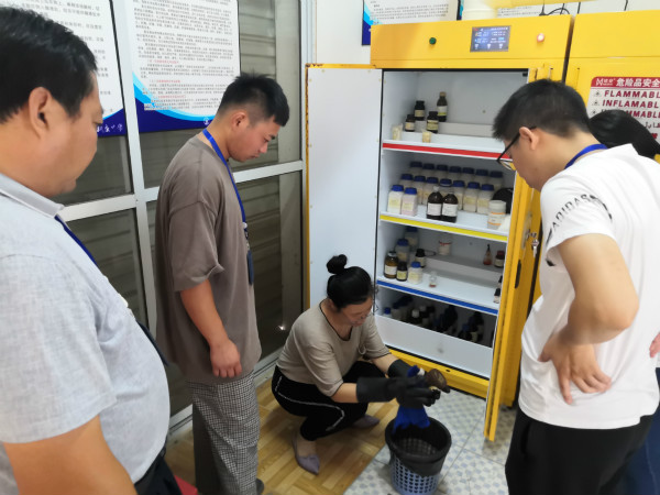 为推进实验室安全,强化危化品储存环节的安全管理,进一步深化平安校园的建设,增强我校师生安全意识,我校严格贯彻指导精神,8月27日,我校化学组教师在保卫科王强主任和后勤部卫志荣主任的带领下组织开展了化学组全体教师学校实验室安全培训工作。