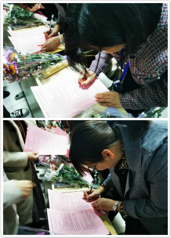 师傅代表李美丽老师发言。李老师的话语真挚而恳切,表示出愿意为新教师的快速成长多献一份力的精神。