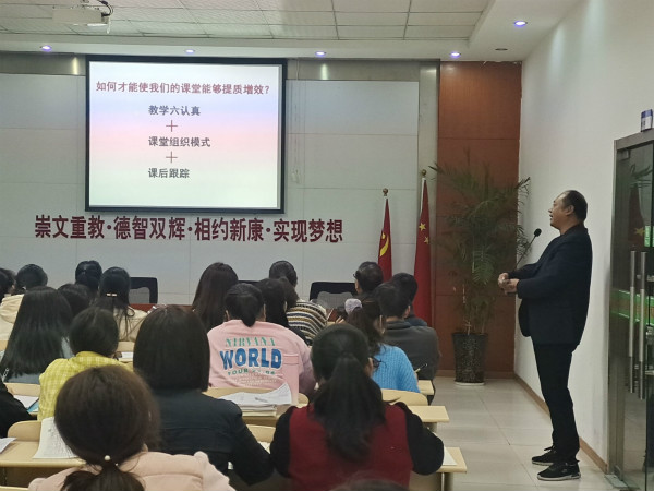 最后,副校长段方对高中部教学工作作主题报告。段校长从十月份的工作小结,十一月份的主要工作,课堂的提质增效,师德师风的狠抓落实四个方面进行发言。