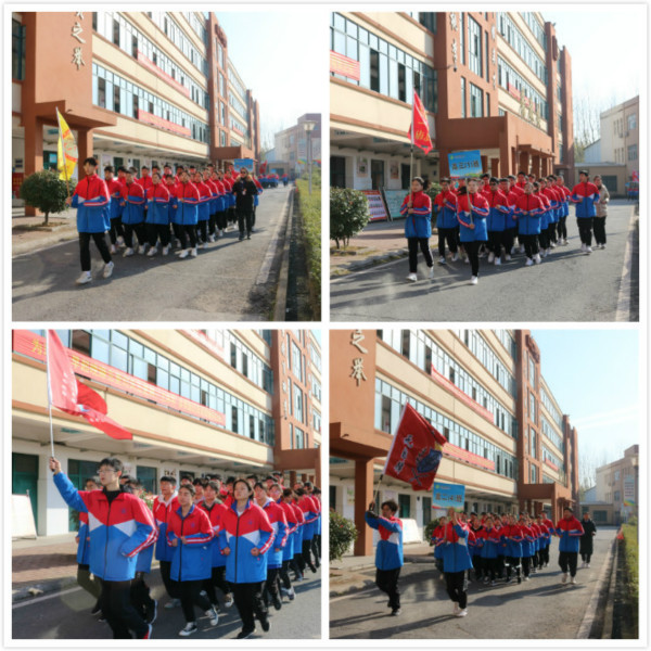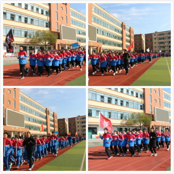 魏鑫主任宣布比赛开始,比赛分为五个组进行,各班按规定的路线,整体跑两圈,两圈后跑回原位置。评委根据各班具体表现分别进行评分。