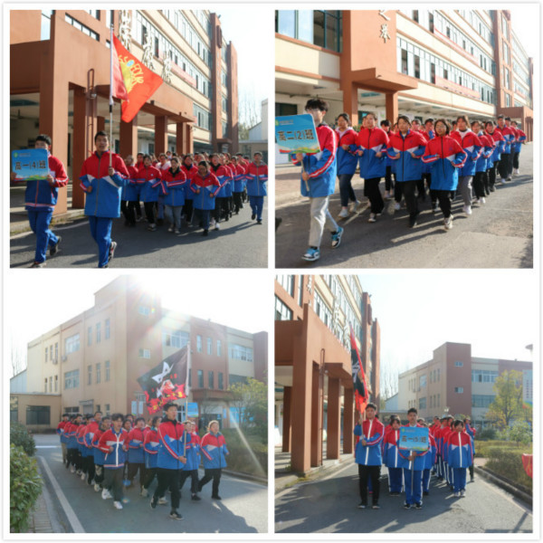 最后,全体班级在篮球场、田径场进行集体展示,一时间,各种响亮激昂的口号声此起彼伏,响彻操场。