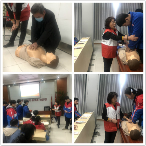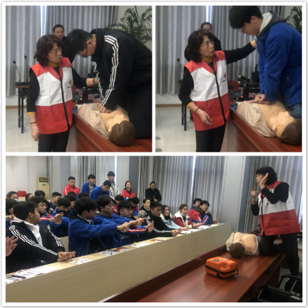 本次培训分为理论讲解和实践操作两个部分。首先,罗老师通过PPT课件向师生讲解了:突发事件时该如何自救?如何在紧急情况下简单处理伤口等基本的应急救护知识。随后,罗老师现场演示了AED自动体外除颤器的正确使用方法;紧接着,罗老师用模拟人现场示范了仰头举颏、开放气道、胸外按压、人工呼吸等心肺复苏技能;最后,学生们在罗老师的指导下,一个个进行胸外按压的基本技能实践。本次培训,深入浅出,通俗易懂,全体师生认真观摩学习,受益匪浅。