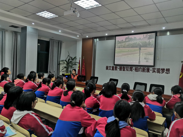视频播放完毕,魏鑫主任就张桂梅校长的例子讲述当代女性应该“自尊、自爱、自强、自立",呼吁全体女生需不断努力学习,成为新时代的知识女性,更应该遵从心中的那份信仰,对自身作严格要求。