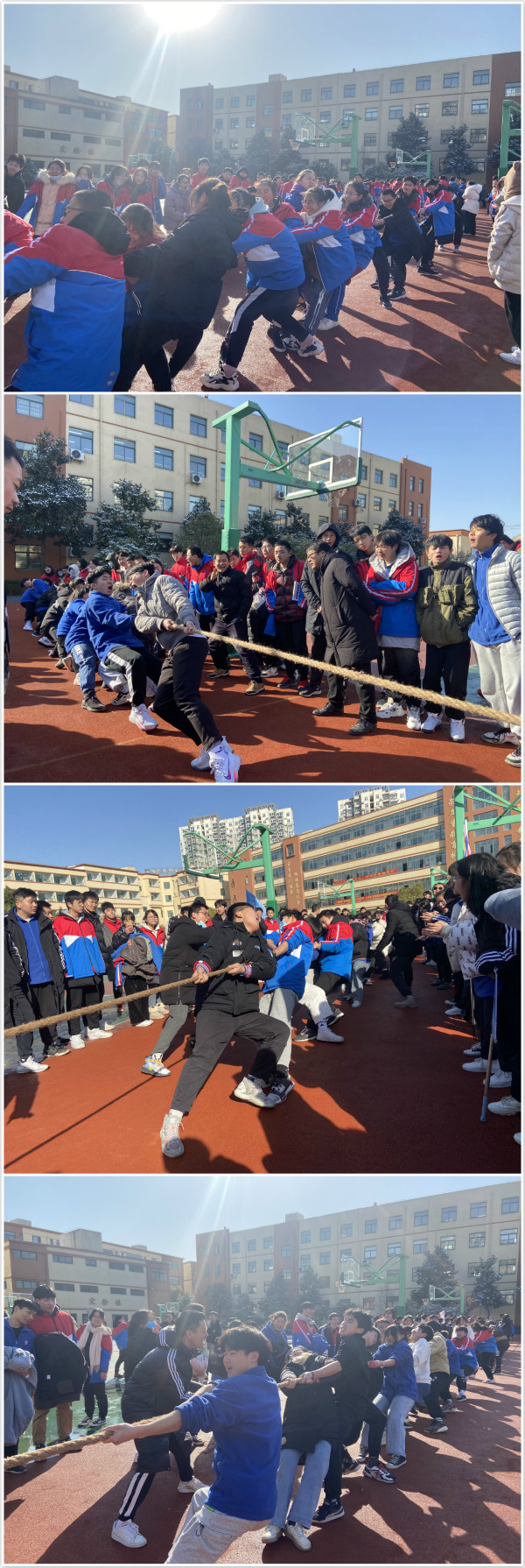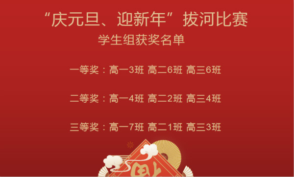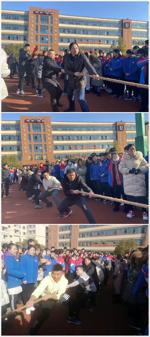 “力拔山兮气盖世,力拉绳兮勇胜敌”,为促进教师间的沟通交流,增强学生间的凝聚力,培养团队的合作能力。在新年来临之际,我校高中部分别于12月30日和31日开展了师生拔河比赛。