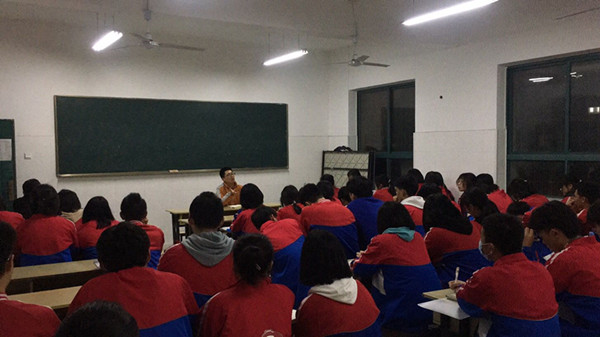 第二个阶段:江正、陈鹏、代秀松、刘强强四位老师给高二理科优生做学法指导。
