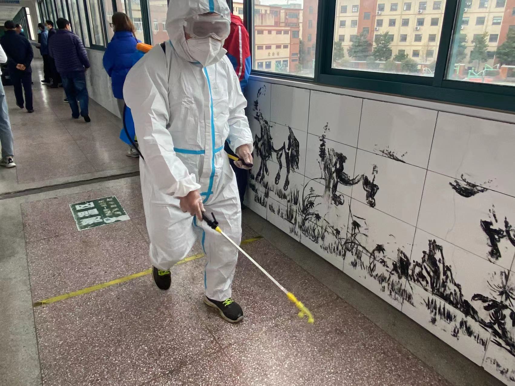 专职消杀人员对该生行进路线进行消杀