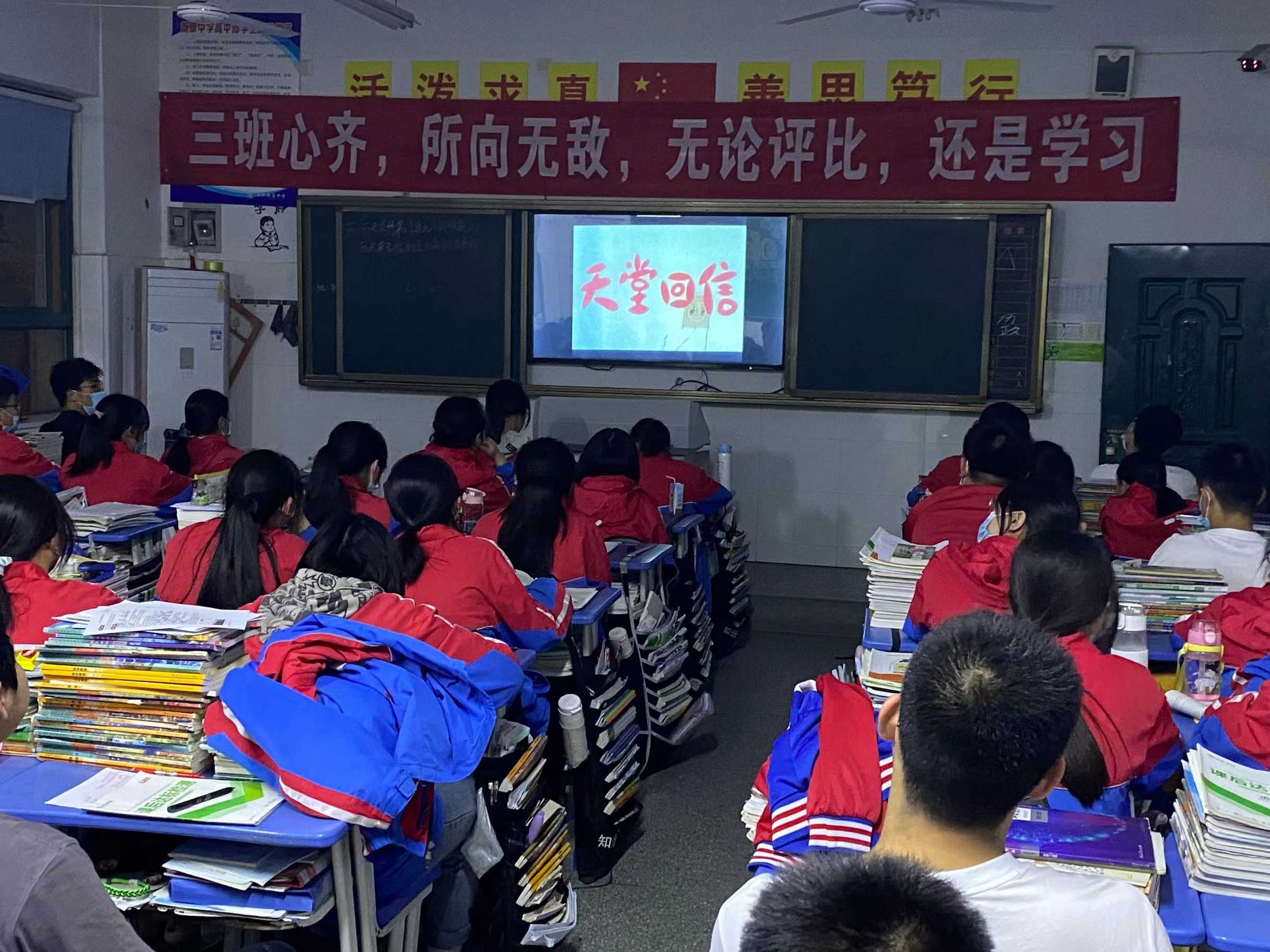 本次观影活动为学生播放的是《天堂的回信》,这部电影讲述的是五岁小孩晨晨因母亲出国,把他托给爷爷照顾。爷爷是退休邮差,但仍热心服务。他对孩子采取朋友的态度相处,爷孙俩发展出深厚的感情。后来母亲回来了,晨晨不得不回到母亲身边。母亲本来对爷爷有所误会,在知悉真相后也改变了态度。无奈爷爷终因年老去世,晨晨用放风筝的方式把他写给爷爷的信送到天堂去。该片人物简单,故事清淡,却洋溢出浓郁的亲情,并深具时代感与教育性。