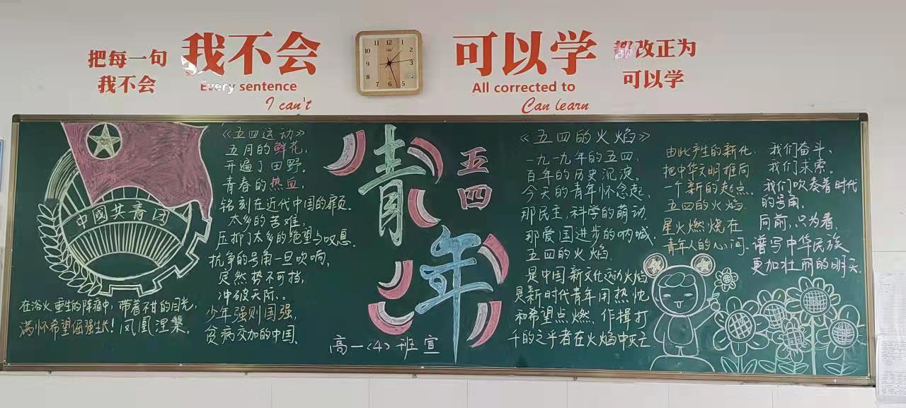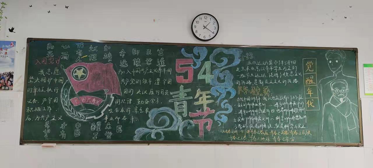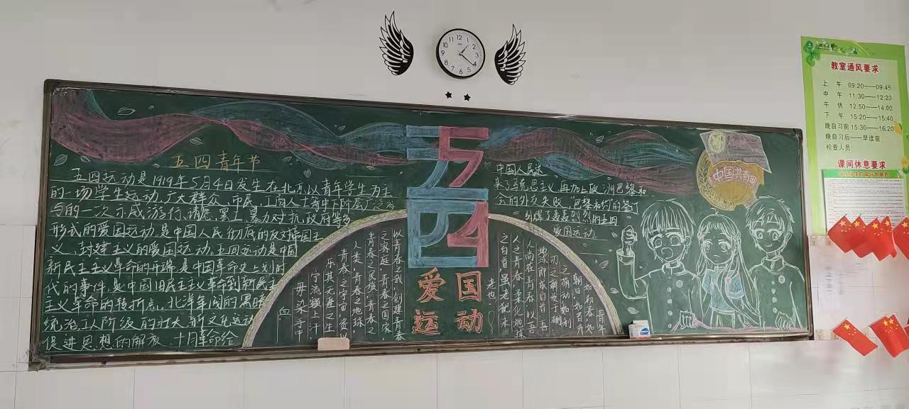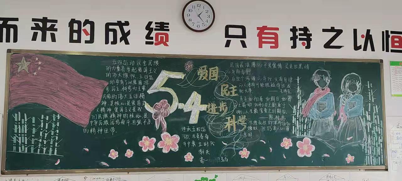 为了激发新康学子积极进取,承担青年使命的担当精神,高一高二年级进行了以“五四精神,传承有我。”为主题的黑板报活动。此次黑板报以“五四精神”为主题,各个班级每位同学齐心协力,出谋划策,认真完成了黑板报的制作。通过评比,教务处丁健主任和团委魏鑫书记给获奖班级颁发了奖状。“五四”黑板报活动不仅促进了爱国主义精神的进一步弘扬,还让社会主义核心价值观在新康学子心中得到进一步培育,根深蒂固,繁花似锦。