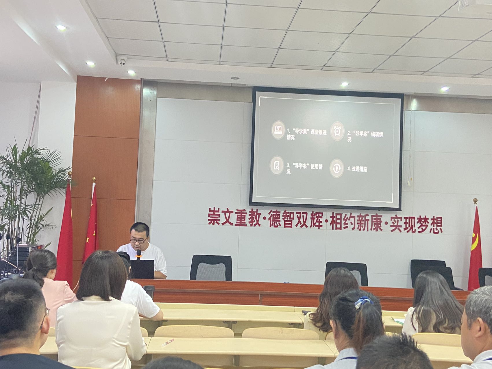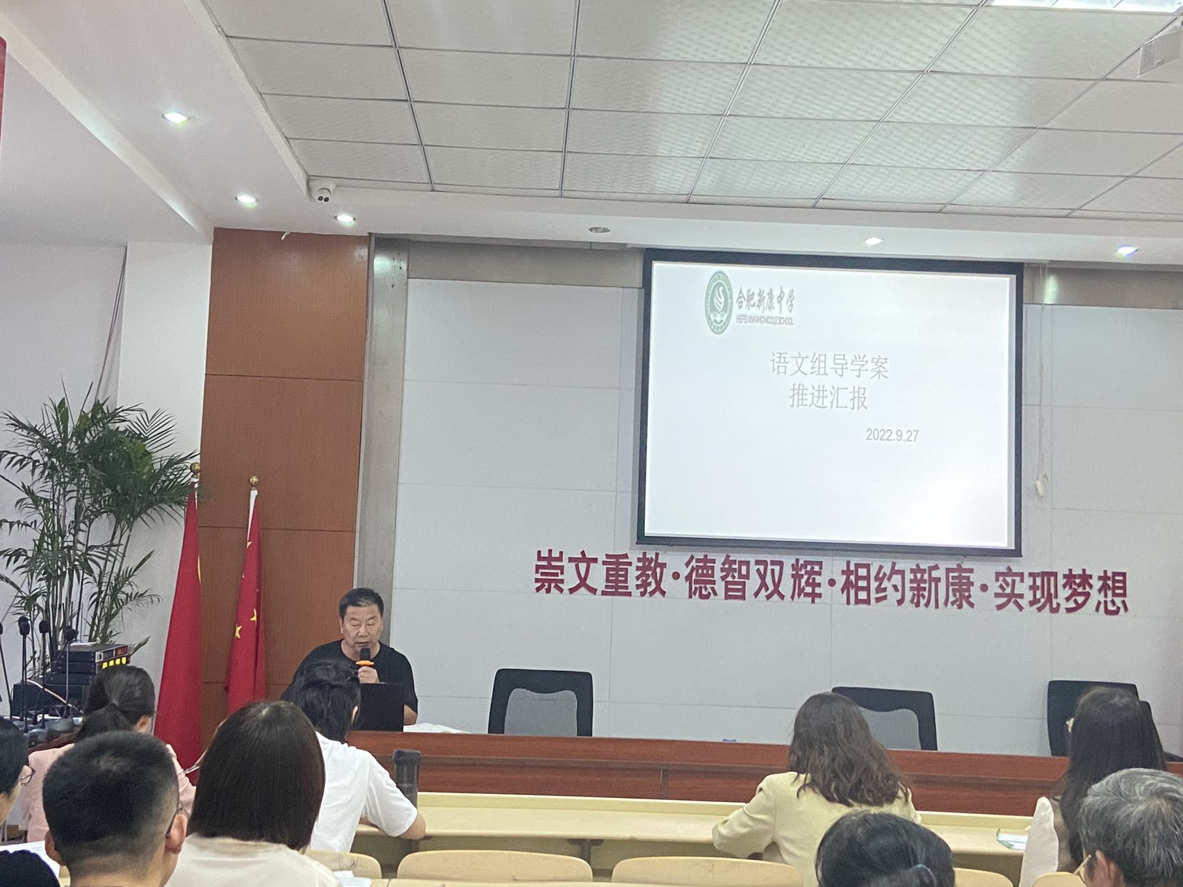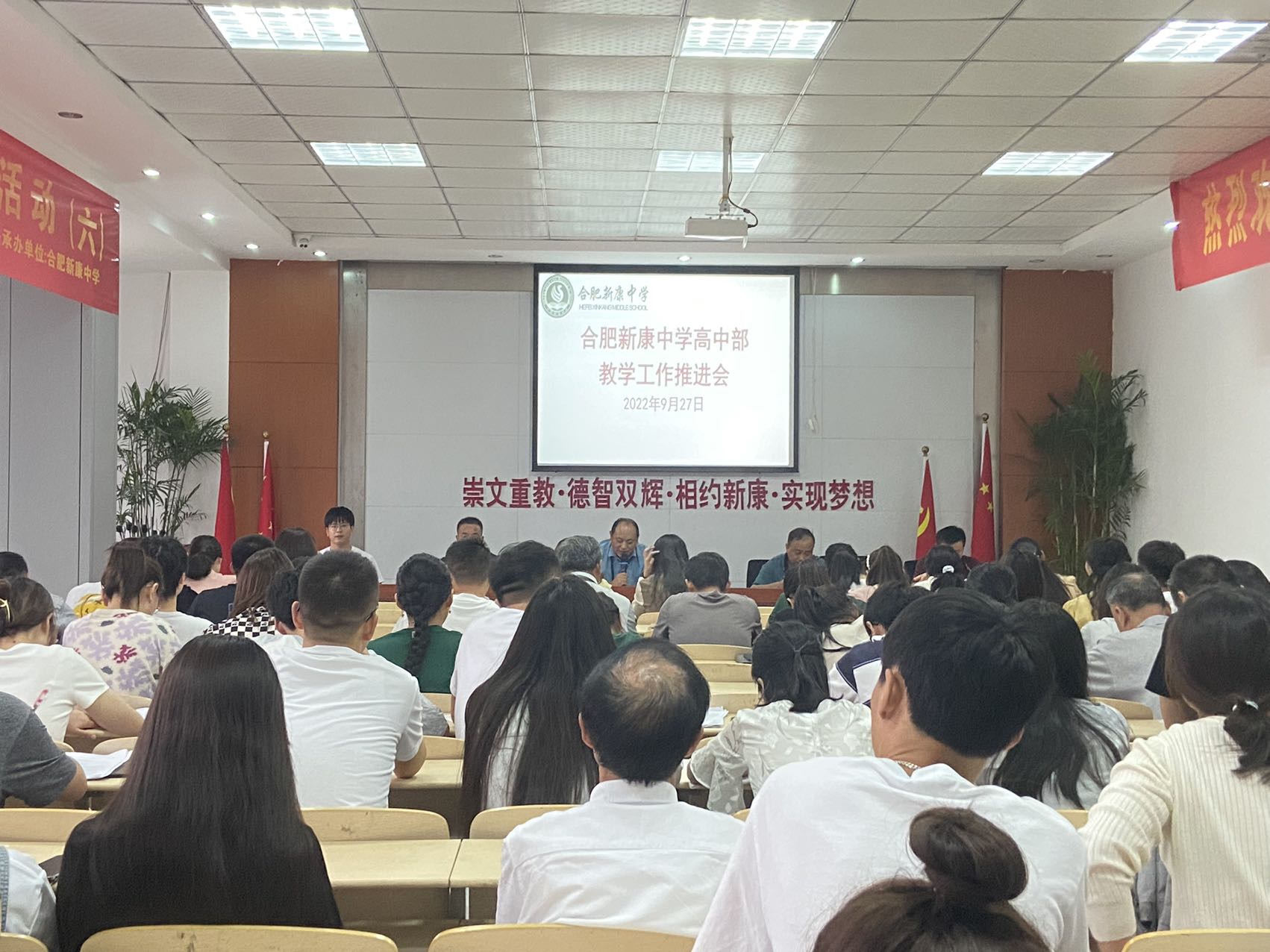 2022年9月27日,合肥新康中学高中部召开教学工作推进会,高中部校长段方、教务处主任张付强、政教处主任李超群等出席了此次会议,会上不仅对上一年度师生获奖情况进行总结表彰,更对近期导学案编写实施进行了研讨和交流。