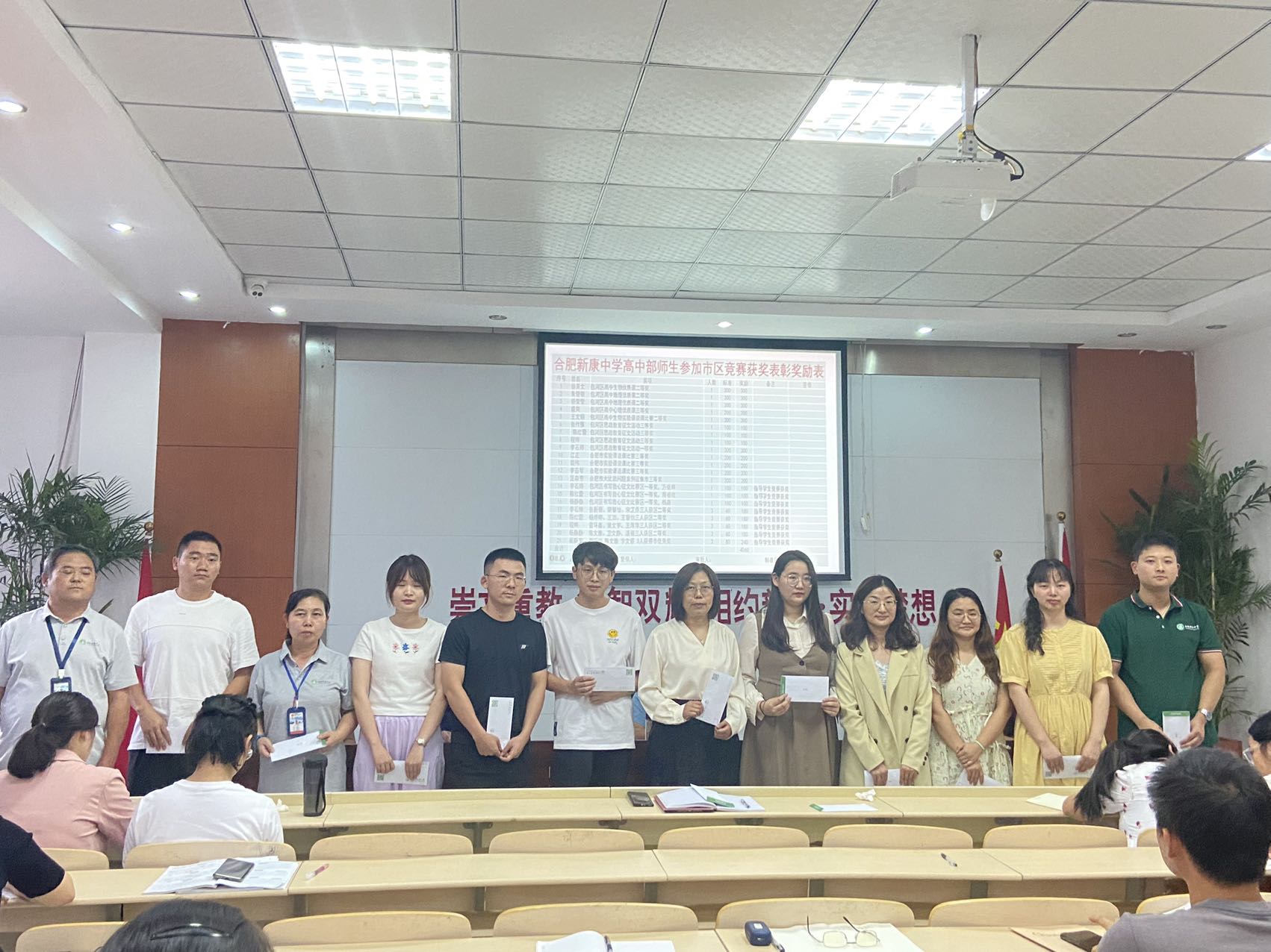 首先,对上一年度师生参加市、区竞赛获奖进行表彰,共31人次获奖。