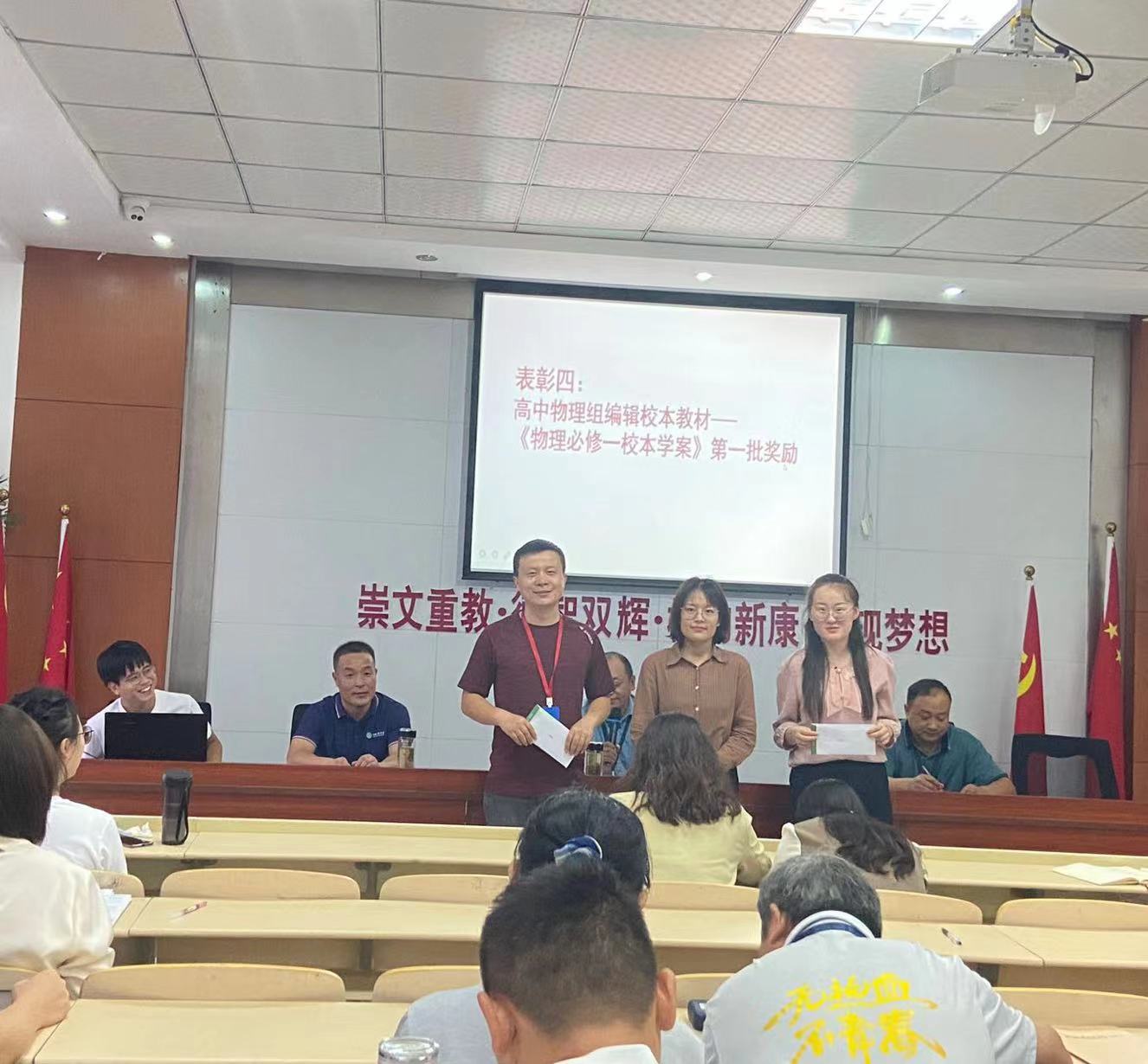 最后,对高中物理组编辑校本教材《物理必修一校本学案》第一批进行奖励。