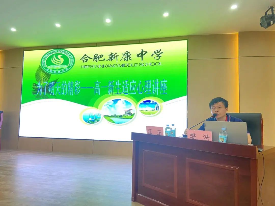 在会议的第二阶段,高一年级樊浩主任给同学们带来了《高一新生适应心理讲座》,帮助同学们在高中的学习和生活中找到正确的方向,更好更快地适应高中生活,树立远大理想和目标,科学规划高中生涯。同时,也给同学们提出了宝贵的意见和建议,对全体同学军训期间和未来三年高中生活和学习提出了明确的要求。